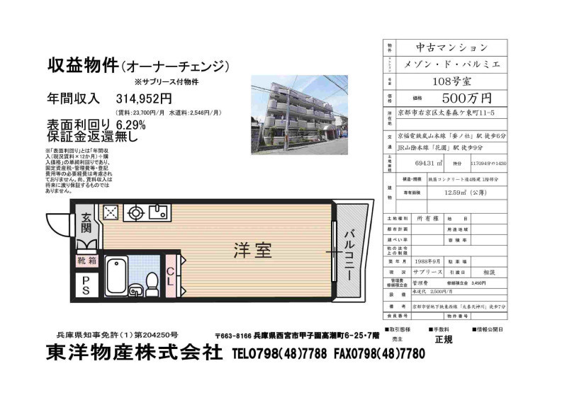 | 所在地 | 京都府京都市右京区太秦森ケ東町11-5 メゾン・ド・パルミエ | ||