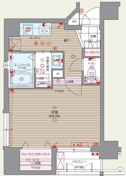 | 間取り | 1K | 間取り向き | (角部屋) |